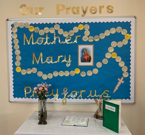 Prayer and worship are integral to the Catholic life of our school. Our classroom prayer corners are maintained by pupils and reflect our Catholic identity and values along with celebrating the key events of the liturgical year.